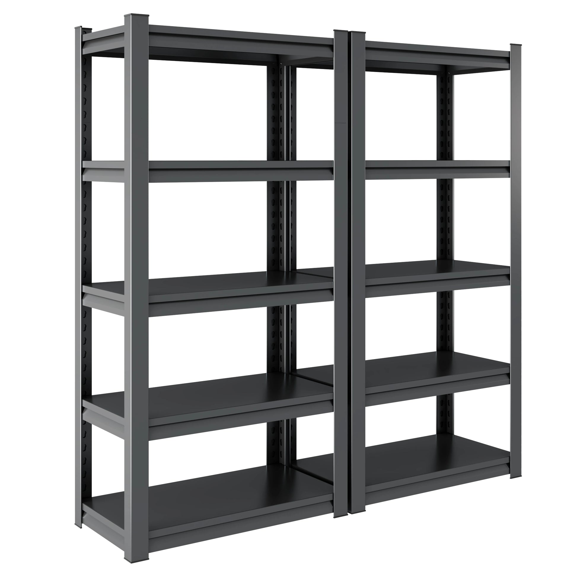 - Versatile, five-shelf unit with open back fits garages, gyms, kitchens, and warehouses; dimensions 35.4"W x 15.7"D x 72"H for a compact footprint.