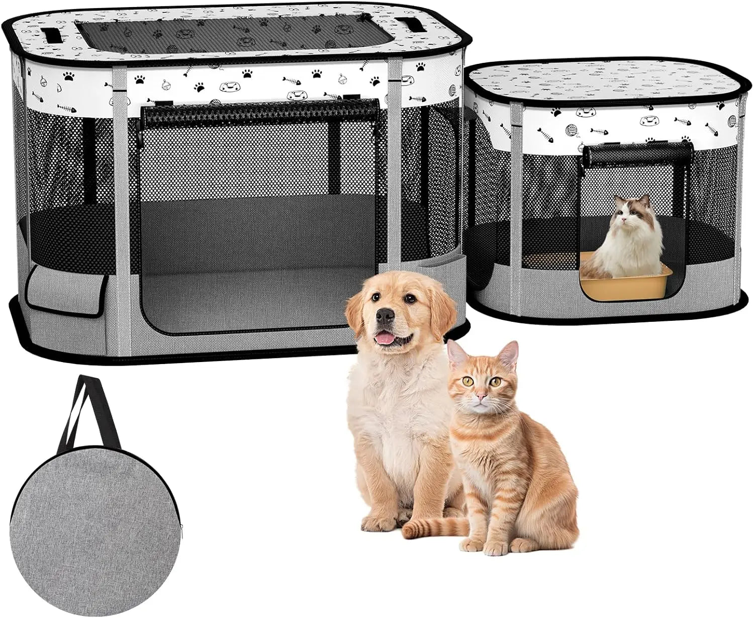 8 Rods Reinforced Cat Dog Playpen Foldable Indoor Outdoor
